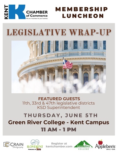 The Kent Chamber of Commerce invites you to our highly anticipated Legislative Wrap-Up, an essential event offering an in-depth analysis of the 2025 legislative session. This is your opportunity to hear directly from policymakers and experts about the key decisions made in Olympia—and what they mean for your business, your workforce, and our broader community.